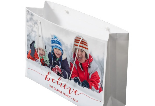We are excited to announce that we’ve been busy filling custom gift bag orders for Zazzle.com. The custom gift bags on Zazzle are a DigiWrap Exclusive product—we use an original and innovative printing process that allows us to print digital custom orders to gift bags. Through this exciting process, we are able to create small, medium, and large gift bags that include a personal message, photo, or design! This special touch might be just what you need to take your gifts to the next level.
