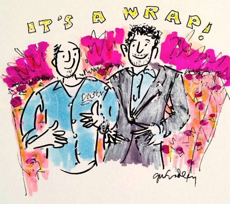 We were so excited to appear on Shark Tank in December, where we made a successful deal with Kevin O’Leary. A few weeks after the appearance, we were surprised and delighted to see illustrator Gerri Findley’s drawing of our appearance. What an excellent way for us to remember our time in the tank!